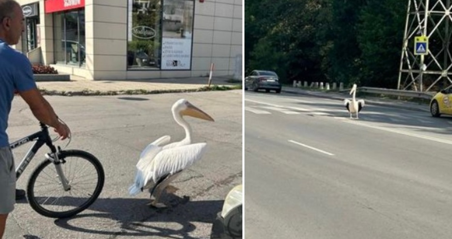 Става въпрос за чудат пеликан, който вероятно е избягал от зоопарка.