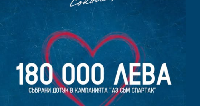 180 000 лева вече са осигурени за футболния „Спартак“ от кампанията за спасяването на клуба. „Аз съм Спартак“ ще продължи в следващите дни с пълна сила.