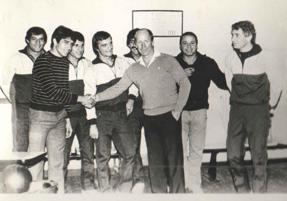 На снимката: Стефан Найденов в приятелско ръкостискане с легендата Боби Чарлтън в навечерието на мача Спартак - Манчестър юнайтед във Варна.