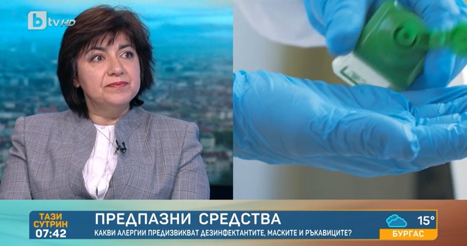 Заради прекалената употреба на дезинфектантите много хора в момента са с контактен дерматит. Това разкри в сутрешния блок на БТВ доц. Мария Стаева, началник на клиника по "Алергология" в Александровска болница.