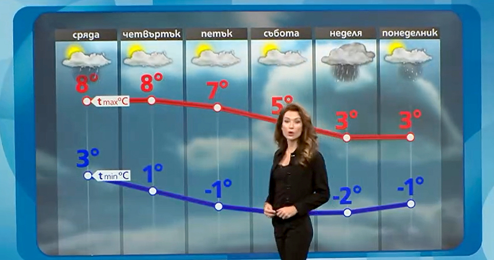 В неделя и понеделник очакваме ново заоблачаване и кратки валежи от дъжд и сняг, съобщи прогнозата Никол Станкулова.