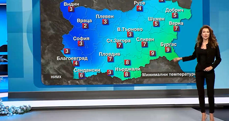 Утре ще е предимно облачно. Сутринта термометрите ще показват от два - три градуса в западна България, до стойности до 8 - 9 градуса в югоизточните части на страната, съобщи синоптичката на Нова телевизия Никол Станкулова.
