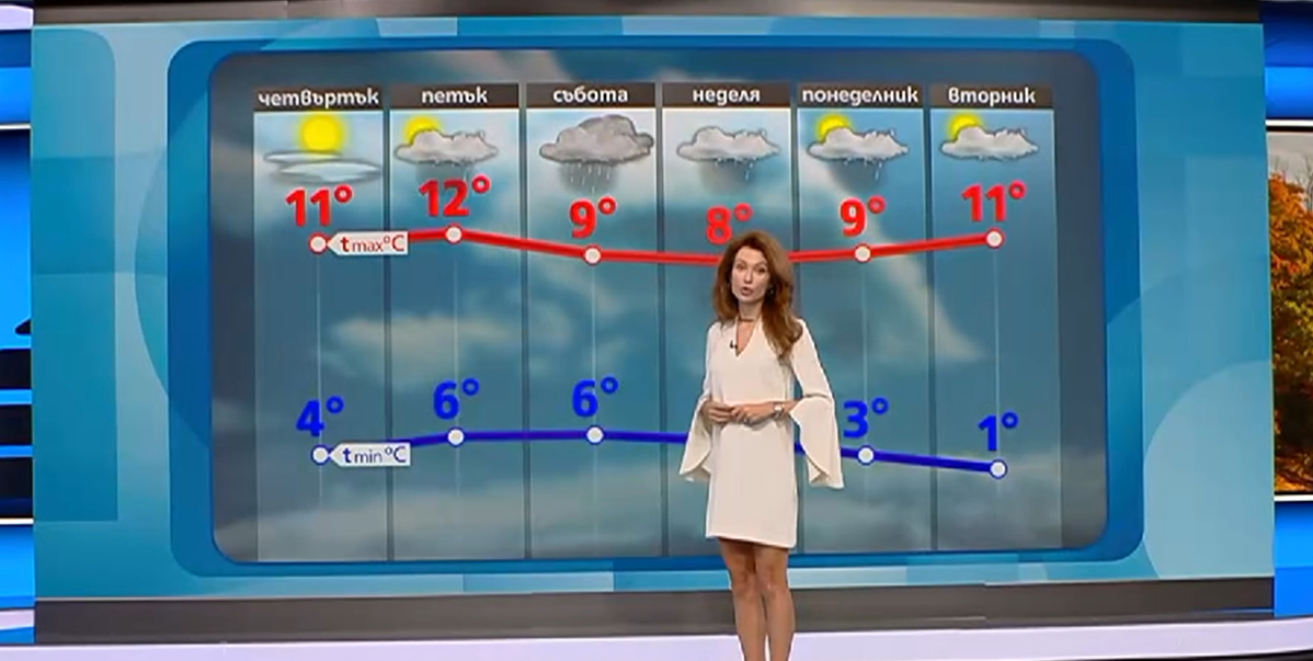 През почивните дни в цялата страна ще е облачно и дъждовно. С умерен северозападен вятър в страната ще нахлува студен въздух и температурите вече няма да превишават 10 градуса, обясни Станкулова.