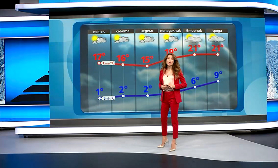 Все по-топло става и в планините, каза още тя. На 1500 м височина вече очакваме до 10 градуса, а дори по най-високите върхове максималните стойностите са положителни. По-голямата част от деня ще бъде слънчев, като значителни заоблачавания се очакват следобед над Стара планина и Родопите. Вятърът ще бъде слаб от югоизток, а снежната покривка ще бъде от 20 до към 150 см, съобщи Станкулова.