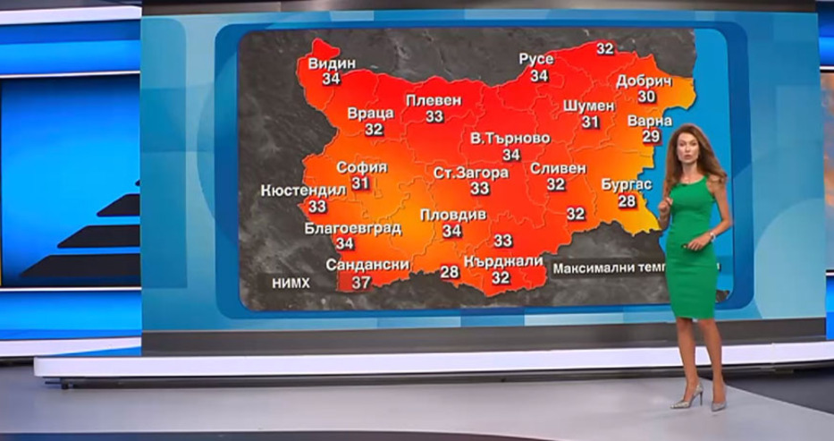 До обяд над цялата страна ще бъде предимно слънчево. Следобед над южна България ще се появи разкъсана облачност, но ще бъде без валежи. В северните и източните райони ще духа умерен източен вятър. Показанията на термометрите ще останат почти без промяна и максималните ще достигат от 30 градуса на североизток до 36 - 37 градуса в крайните югозападни части, обясни тя.