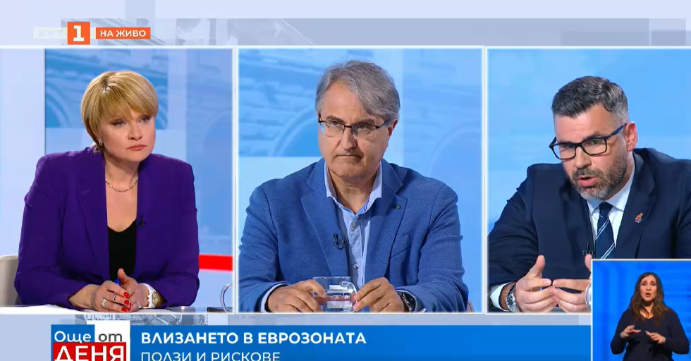 Силен сблъсък между икономисти по повод влизането на България в еврозоната. Евгений Кънев и Кузман Илиев изразиха бурно коренно различни мнения за въвеждането на еврото у нас и инфлацията. Така вместо диалог, се получи ожесточен спор и на няколко пъти се наложи водещата да прекъсва гостите си. Особено Илиев, който бе по-емоционален, но и по-агресивен.
