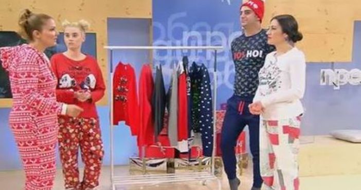 Стилистките на предаването Антония Йорданова и Ирина Денева обясняваха надълго и нашироко за модните тенденции в пижамите за Коледа, които били много популярни на запад и особено в Щатите. Те показаха всички мотиви, десени, шарки, принтове и аксесоари, които вървят с това удобно и практично облекло.