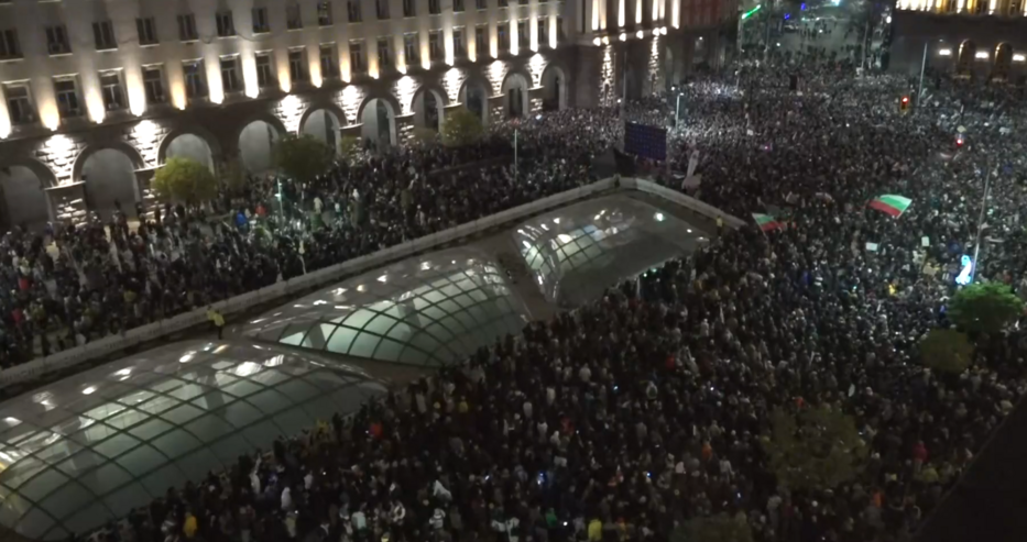Ройтерс предава на живо кадри от въздуха на огромния протест в София.