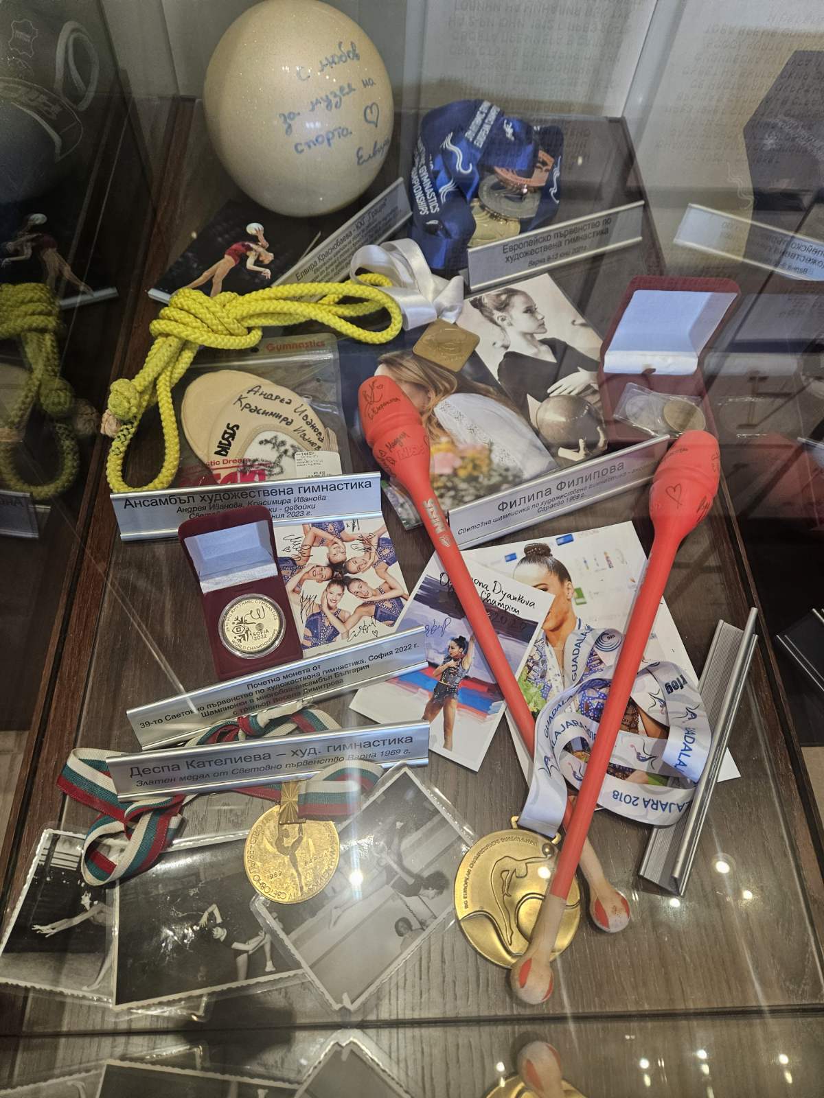 В музея е обърнато специално внимание на най-грациозния спорт – художествената гимнастика, с постиженията, с които Варна има основания да се гордее. Посетителите могат да видят златния медал на Деспа Кателиева, спечелен на световното първенство в града през 1969 г., както и отличията, и част от уредите, с които са играли нашите момичета в Сараево през 1989 г. Тук са и предмети, дадени от капитана на златния национален ансамбъл в Токио - Симона Дянкова.