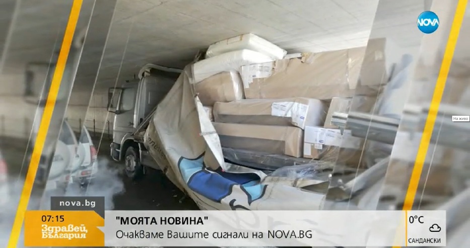 Тир се е заклещил под мост в София, става ясно от снимки, публикувани в групата "Забелязано в София".