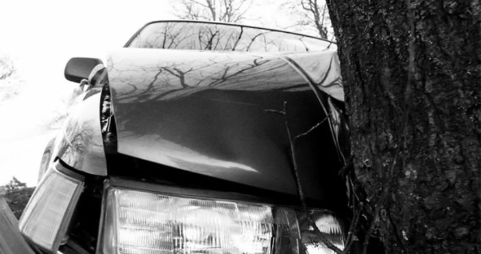 Тя се поднася, излиза вдясно извън платното за движение и се блъска в крайпътно дърво.