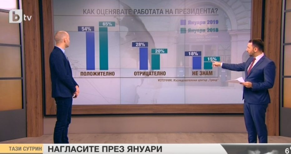 Рейтингът на президента Румен Радев е спаднал през януари. Това заяви социологът Димитър Ганев пред Антон Хекимян в „Тази сутрин” по БТВ току що. Данните са на изследователски център ТРЕНД.