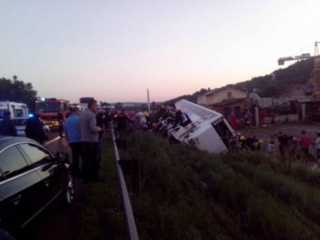 Тази сутрин около 4 часа, автобус превозващ 86 души от курорта Полихроно, Гърция, се е преобърнал при Бубан поток, вероятно след като шофьорът е заспал на волана. По думите на представителката на фирмата, Невена Маркович, шофьорите по време на пътуването са се сменили, тъй като били двама. - Шофьорите караха на смени, а дали водачът, който в момента на катастрофата е заспал зад волана или не, не знам, защото и аз спях, заявява Маркович.