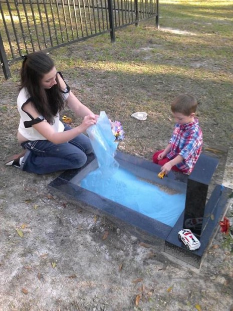 Трогателно: 3-годишно дете си играе с мъртвото си братче върху гроба му