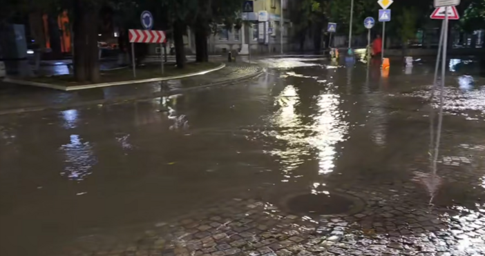 Тежко е положението в центъра на Варна след проливния дъжд тази вечер.