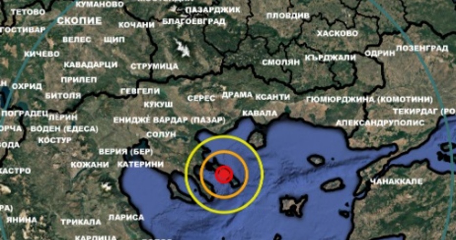 Трусът с магнитуд 5,1 по скалата на Рихтер е регистриран в 18:11 българско време. Епицентърът е на Халкидическия полуостров - на 279 км от София.