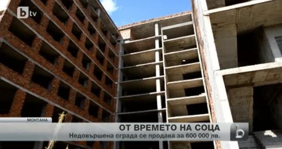 Цяла недовършена сграда, чието строителство е започнало още през 80-те години на миналия век, се продава за 600 000 лева в Монтана.