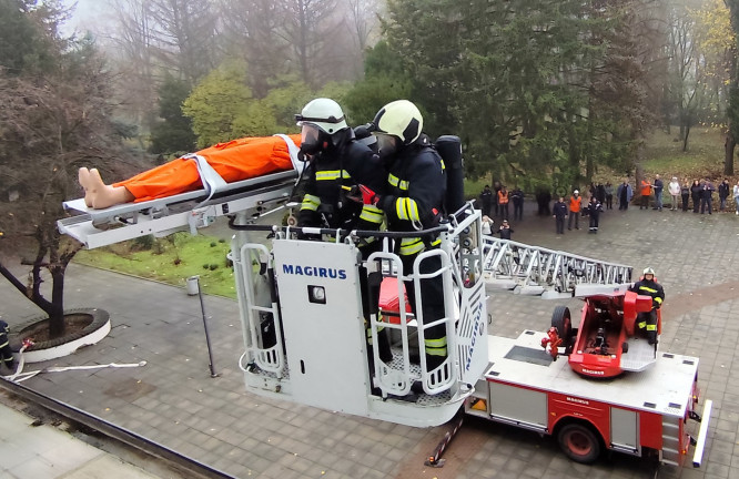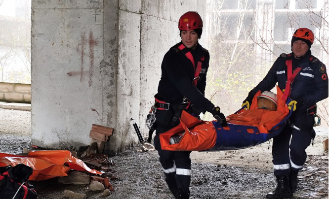 Огнеборците спасиха и работник от строителна фирма, който извършвал строително-монтажни дейности в сграда в непосредствена близост до университета. Той пострадал тежко след удар по главата. След силния трус са разрушени част от вътрешните стълби, мъжът е в безсъзнание, но с наличие на основни жизнени показатели. Екип проникна в сградата и с помощта на въжена алпийска линия тип „тролей“ и твърда носилка мъжът бе евакуиран и транспортиран до линейката.