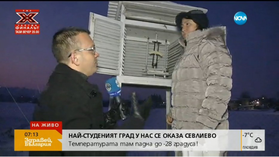 В града обаче са виждали и по-голям студ, стана дума от пряко включване на "Нова телевизия". На 9 февраури 2005 г. там термометрите са измерили минус 34 градуса.