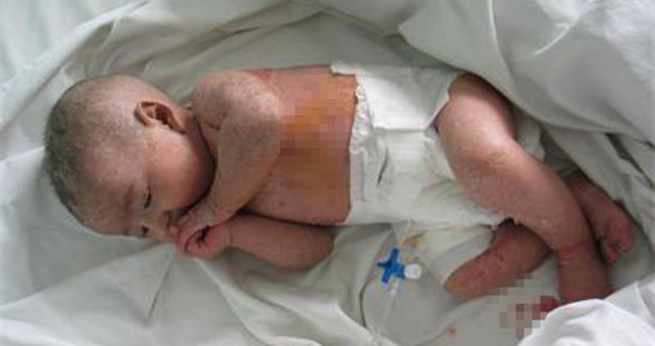 Кърмачето е в тежко състояние и с опасност за живота, след като майката третирала кожата на детето до края на втория месец със сол по съвета на по-възрастна жена. Впоследствие кожата на детето силно се зачервява и се напуква.