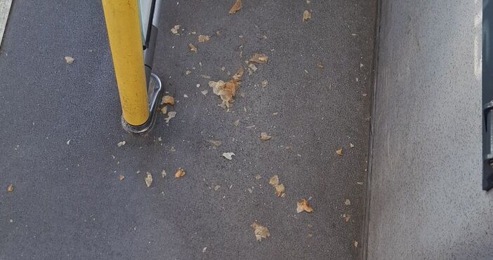 От кадрите се вижда, че в рейс номер 83 някой е ял баница и е оставил камара с трохи в автобуса.