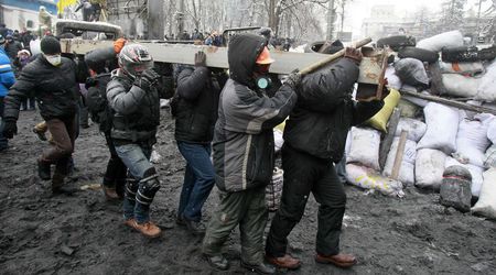 На улица "Грушевски", която е най-горещата точка на сблъсъците от последните дни и часове, излязоха бронирани машини. Местни медии разпространяват кадри с "униформени с пагони" и БТР, стоящ зад стената от части за борба с безредиците.