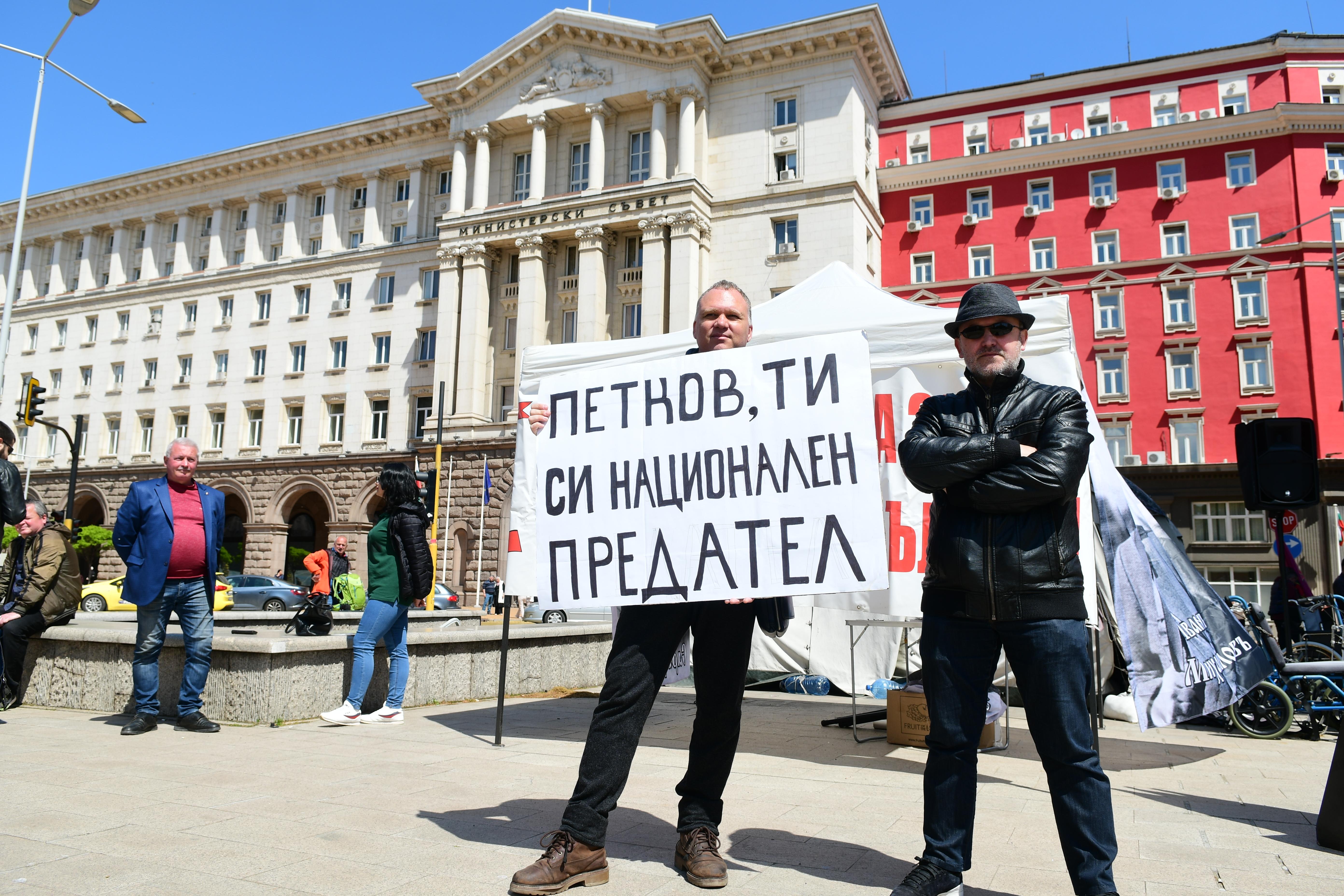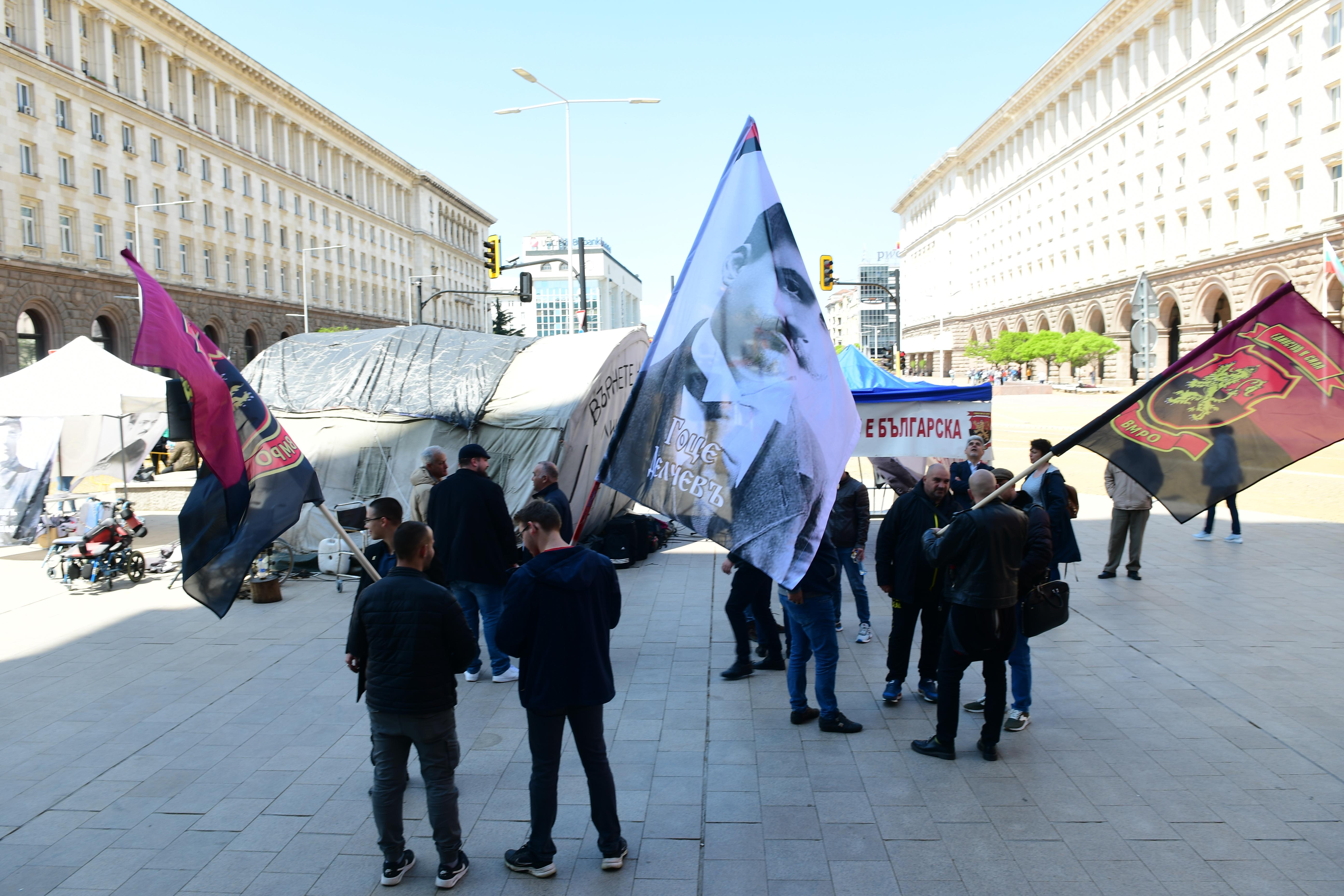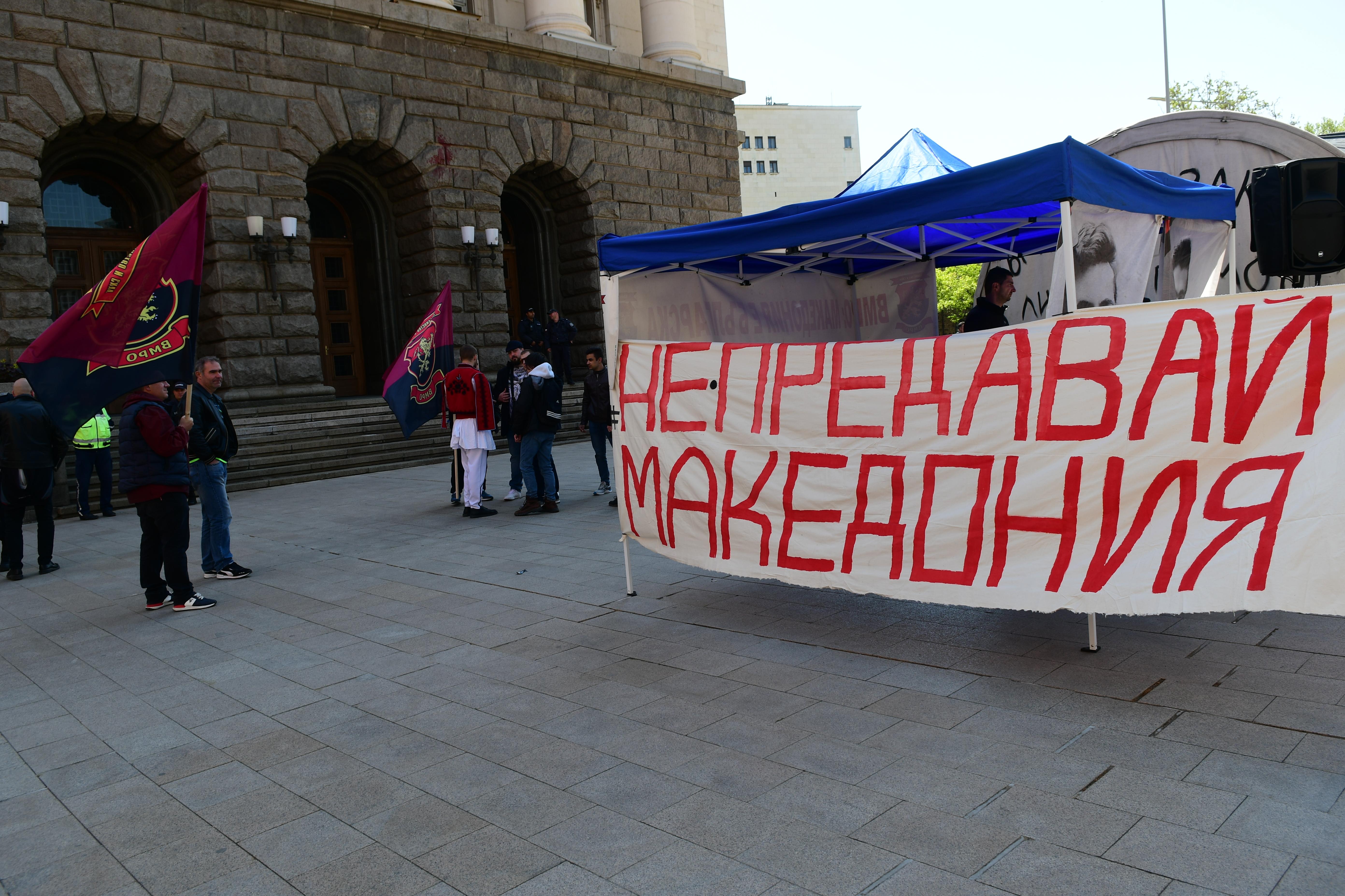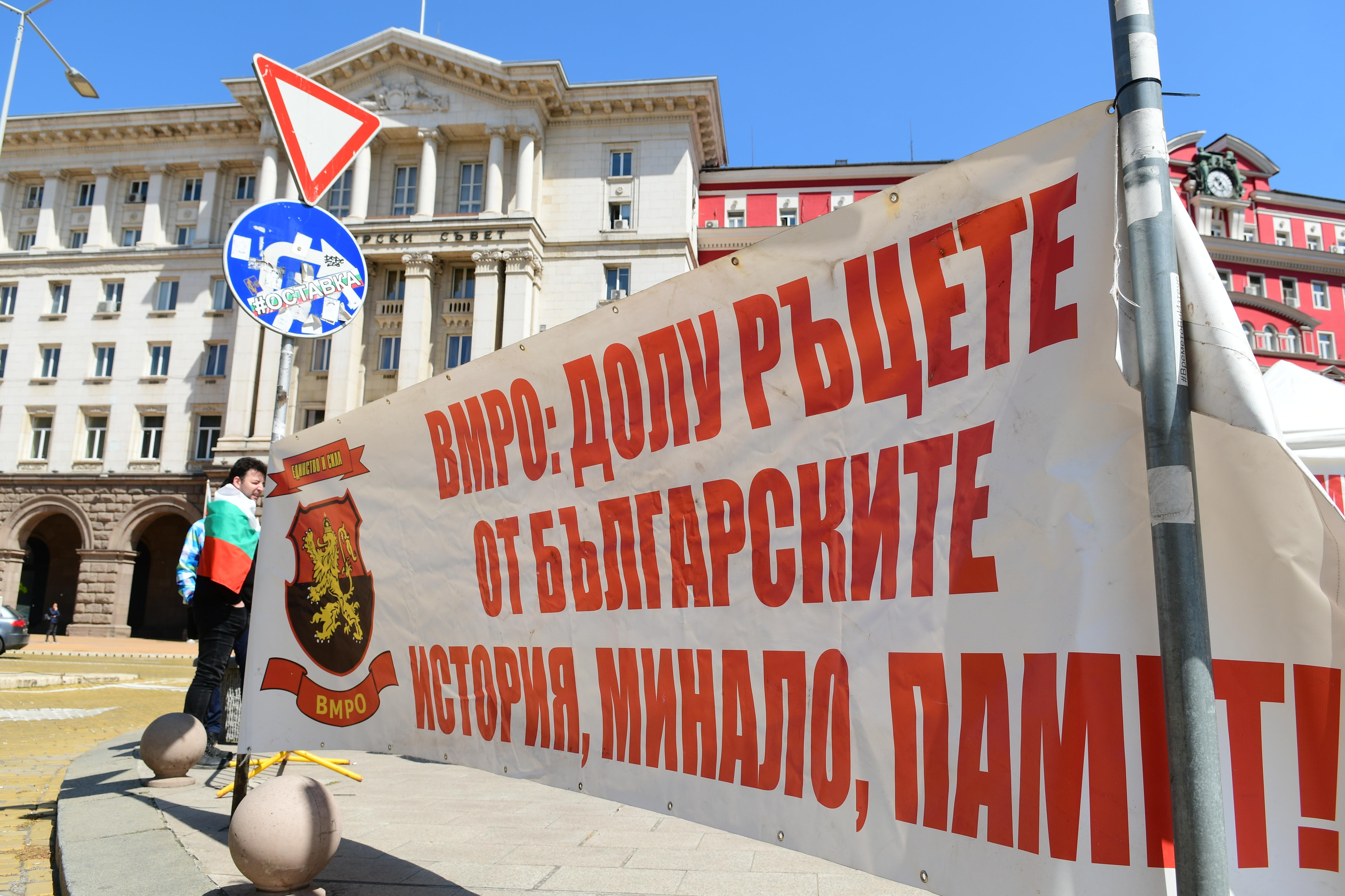 ВМРО излезе на протест пред Министерски съвет срещу преговорите със Северна Македония, показа Булфото.