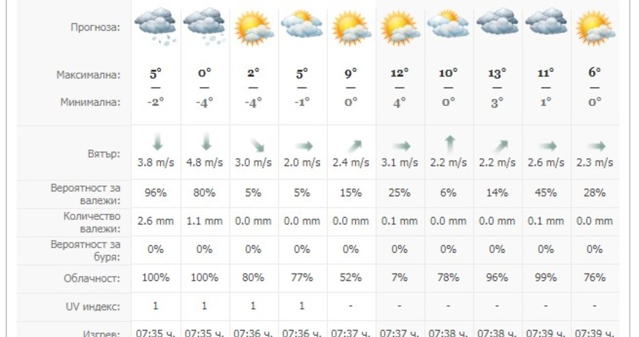През деня се очакват температури до около градуса. В четвъртък ще бъде още по-студено, а в петък не е изключено да превали сняг.