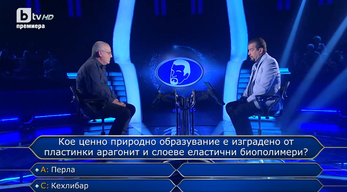 За тази сума, която Иван заключи, той бе попитан: Кое ценно природно образувание е изградено от пластинки арагонит и слоеве еластични биополимери?, - Перла, Ахат, Кехлибар и Лунен камък.