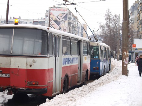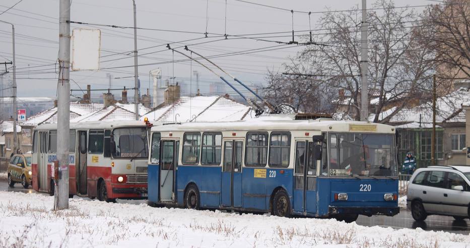 Голямото заледяване на Варна в неделя остави града без тролеи. Ледът скова контактната им мрежа и електрическият транспорт беше заменен с автобуси, които да извозват пътниците по маршрута му. Днес по улиците пък можеше да се види интересна гледка – автобус бута тролей, който макар и закачен за жиците, явно не можеше да се придвижва на собствен ход.