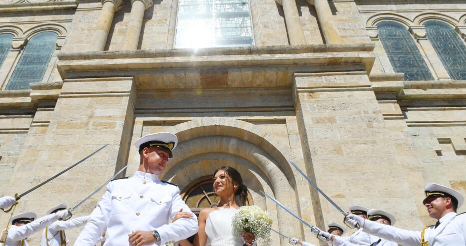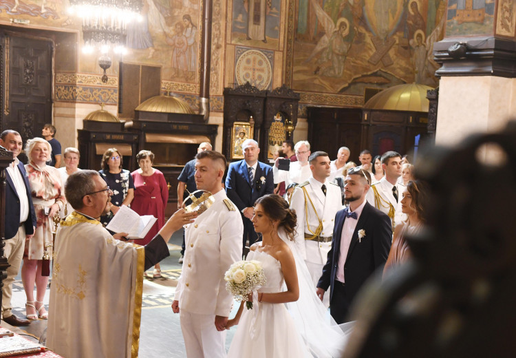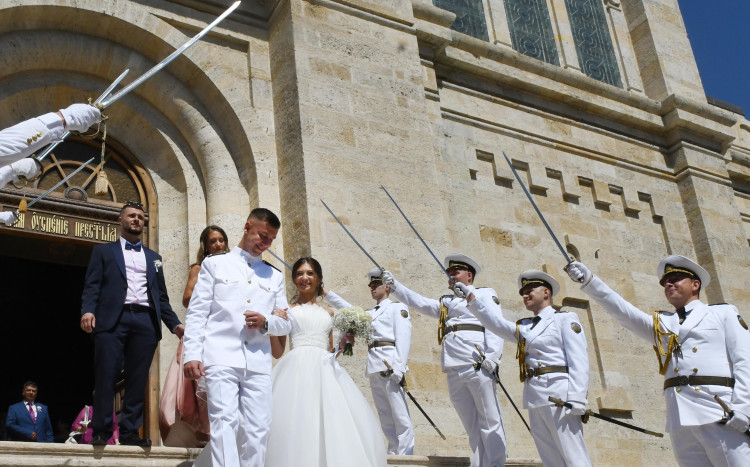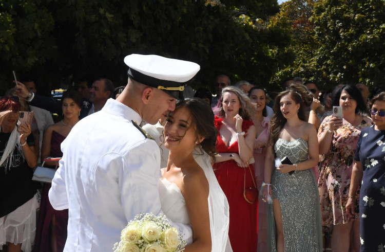 Старши лейтенант инж.Тихомир Александров и лейтенант инж. Диляна Димитрова си казаха"Да" в Катедрален храм-паметник "Успение Богородично" в гр.Варна .Те са възпитаници на ВВМУ "Н.Й.Вапцаров". Курсантска любов. Вече станаха семейство Александрови пред погледа на гостите на празника и десетки мкинувачи и туристи . Младата двойка спечели симпатиите на всички свидетели на събитието с офицери от Военноморските сили, предаде Булфото.