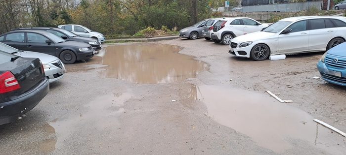 "В момента паркинга е едно езеро. Предлагам временно решение да се положи някакъв инертен материал като фрезован асфалт, за да е няма тази локва.", пише поредният възмутен варненец, който ни изпрати и снимки на състоянието, в което е сега паркингът.