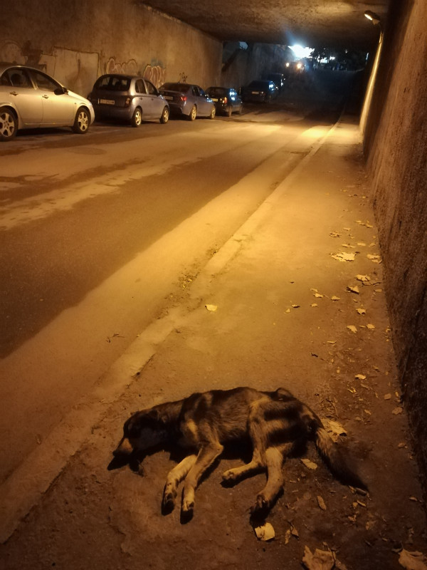 Сигнал за пострадало животно получихме от разтревожена варненка. Тя ни пише, че кученцето навярно е било блъснато от кола и бедства в подлеза на Спортна зала.