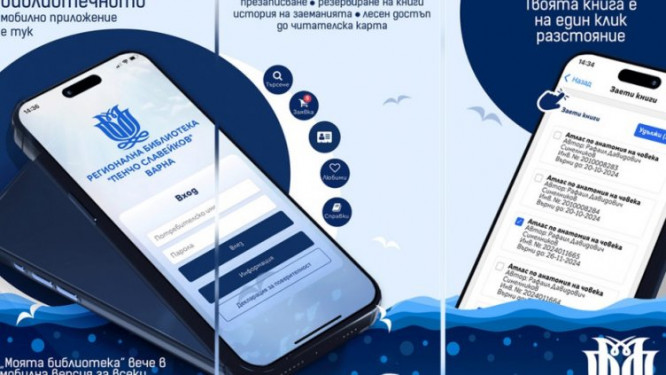 Варненската регионална библиотека „Пенчо Славейков“ първа в страната въведе мобилно приложение за услугите си. То е налично от 1 септември, може да се свали от двата най-популярни интернет магазини, и вече е изтеглено от над 500 души, съобщи за БТА директорката на институцията Радка Калчева.