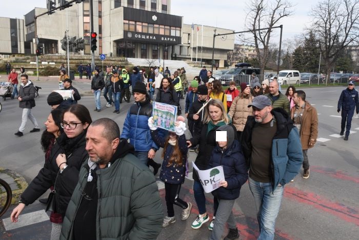 Варненци излязоха на протест с искане Крайбрежната алея да бъде приета като част от Морската градина и да не се допуска движение на автомобили по нея. Те се събраха пред сградата на общината и после поеха на шествие към алеята.