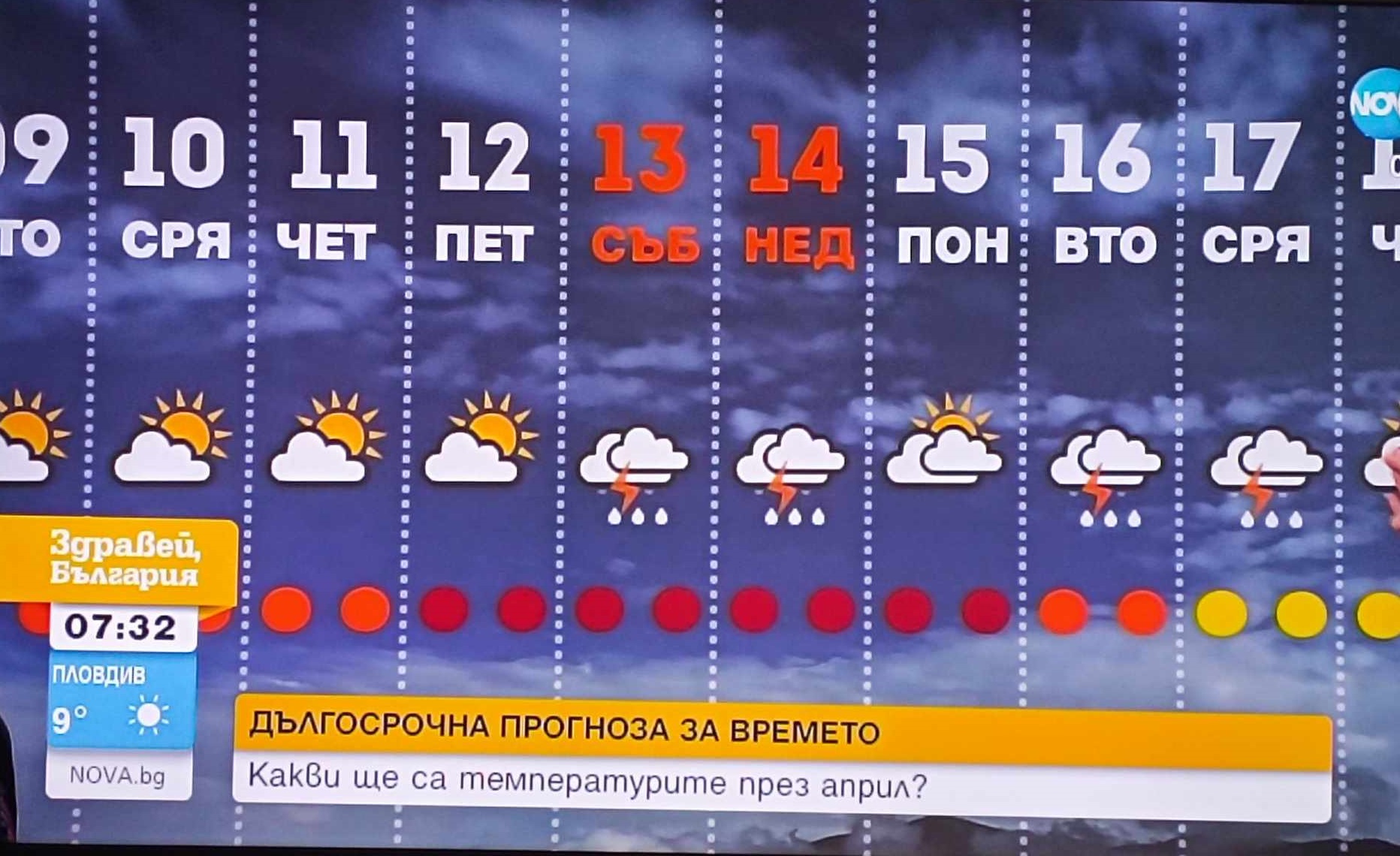 Тук думата взе Василковски. "Това е такъв период, какъвто беше и вчера - гръмотевични бури, които по своя характер са пролетни, краткотрайни, локални, засягат много малка територия. Вчера се развиха в района на Черноморието, след това в Южна България. В Централна и Източна България на този етап се позиционират тези бури. То се вижда, че целият този период до 15 април е доста топъл. 20 - 25, че и 26 градуса и отгоре. Цялата работна седмица до петък ще е слънчева с изключително минимални смущения. Стабилно и устойчиво време до петък. От 15 април започва малко по-динамичен период. 16-17-ти са по-драматичните дни, когато ще премине по-сериозен студен атмосферен фронт, с по-рязко нахлуване на студен въздух. Ще има гръмотевични бури с потенциал за градушка, като ще паднат и температурите - 10-15 градуса. За кратко ще е това захлаждане, после много бързо ще дойдат температурите в този приятен пролетен диапазон", каза той.