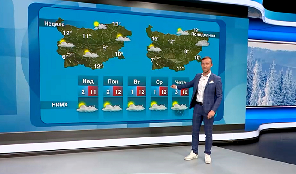 В планините времето е перфектно за зимни спортове и занимания. Температурите са от нула до шест градуса за съботния ден, в зависимост от надморската височина. Облачността ще е малко по-значителна в източните и в централните планински масиви, като има минимална вероятност в Родопите да прехвърчи сняг.
