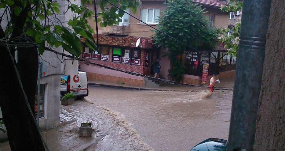 Ремонтираната наскоро варененска улица "Брегалница" заприлича на истинска буйна река по време на пороя над града.