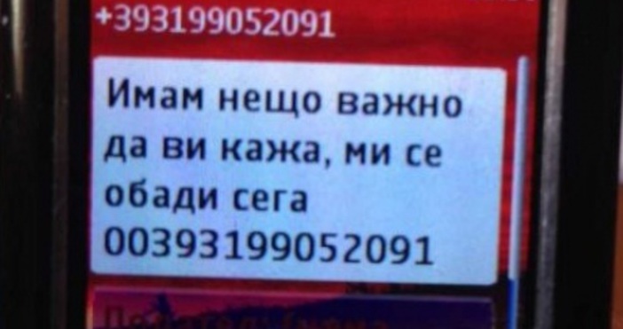 „Внимавайте с тел № +393199052091! Пращат смс с текст: Имам нещо важно да ви кажа, ми се обади сега 00393199052091. Смс-а съм го написал дословно!”, алармира нашият читател Тодор Димитров.