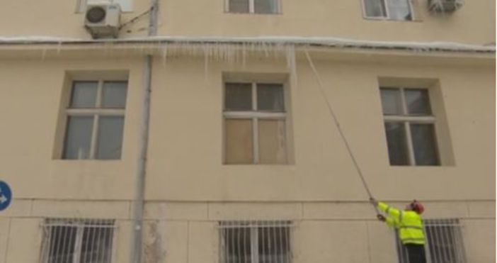 Междувременно аварийните екипи на столична община премахват опасните висулки по сградите над главите ни, предава bTV.