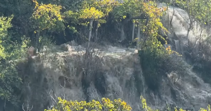 От кадри в мрежата се вижда, че водата извира от насипа и тече буйно по улицата.