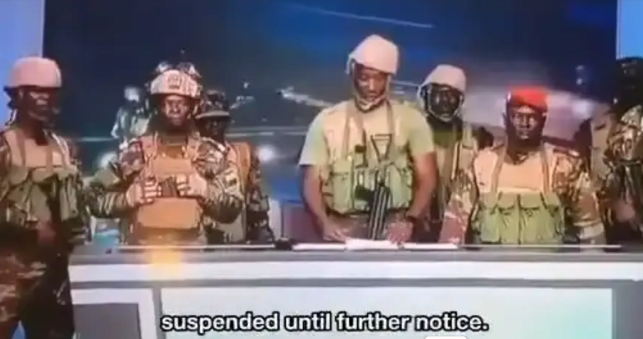 В неделния ден военните обявиха свалянето на президента Патрис Талон, който е на власт от 2016 г., както и разпускането на всички държавни институции. Войниците се представиха като част от „Военния комитет за възстановяване“ (CMR) и категорично заявиха в ефир, че „г-н Патрис Талон е отстранен от длъжност като президент на републиката“.
