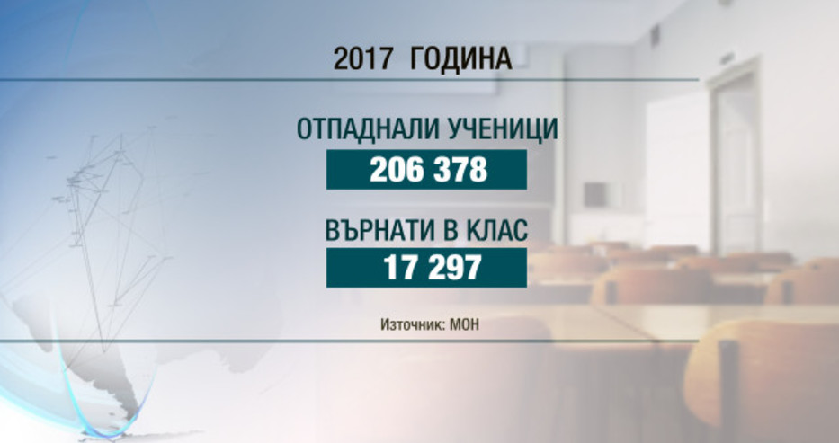 След работата на междуведомствените екипи едва 17 000 са върнатите в клас деца към момента. Над 206 000 ученици са отпаднали от образователната система или никога не са записвани в нея.
