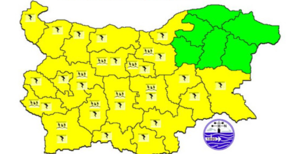 Жълт код за опасно време е издаден за почти цяла България за утре, 08.05.2024 г. За това става ясно от сайта на НИМХ.