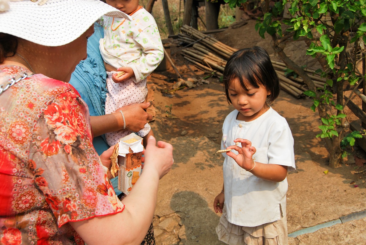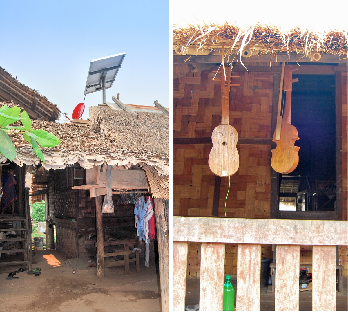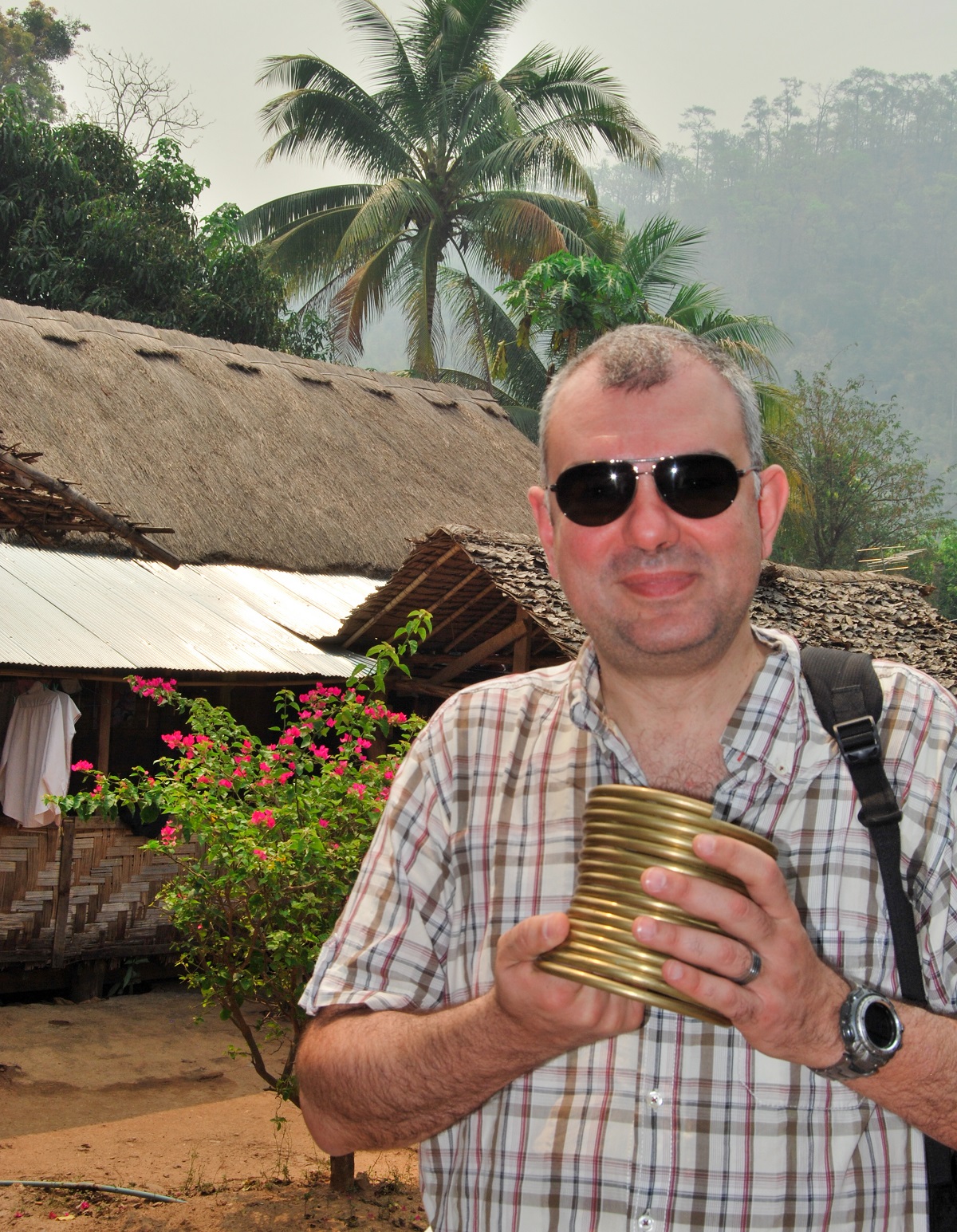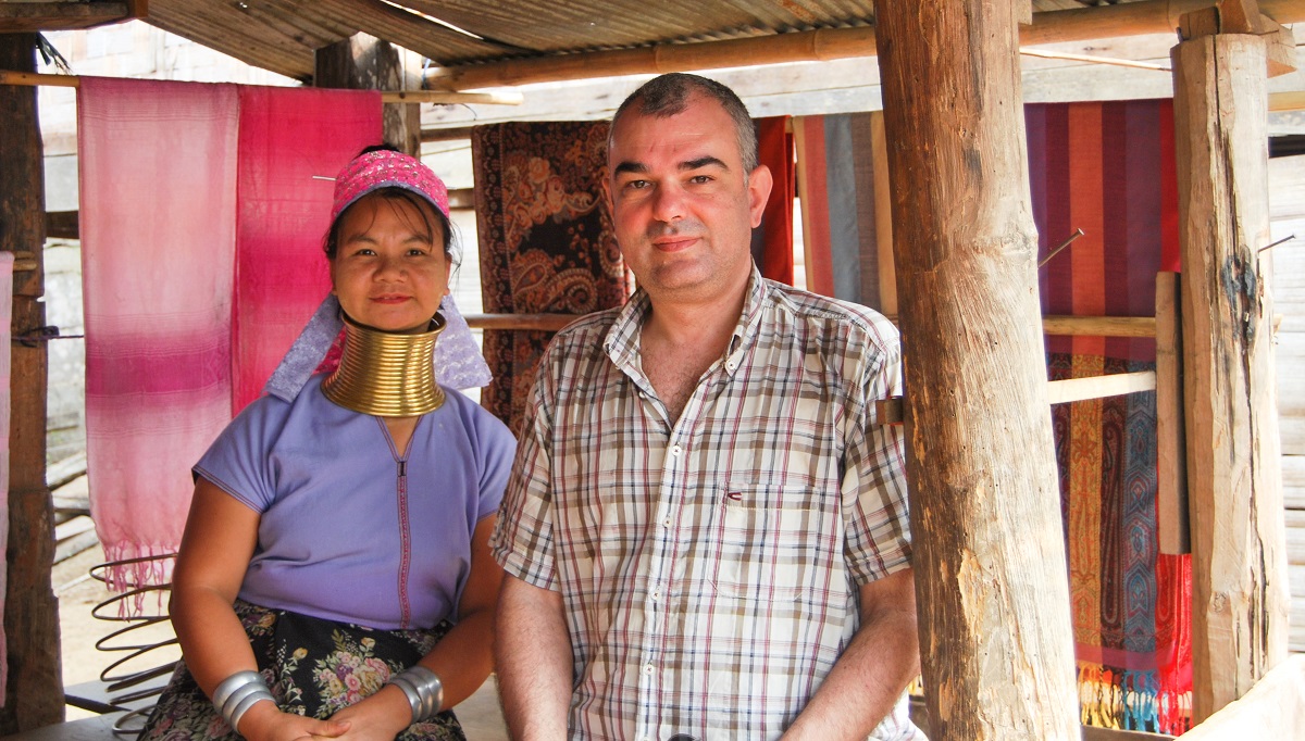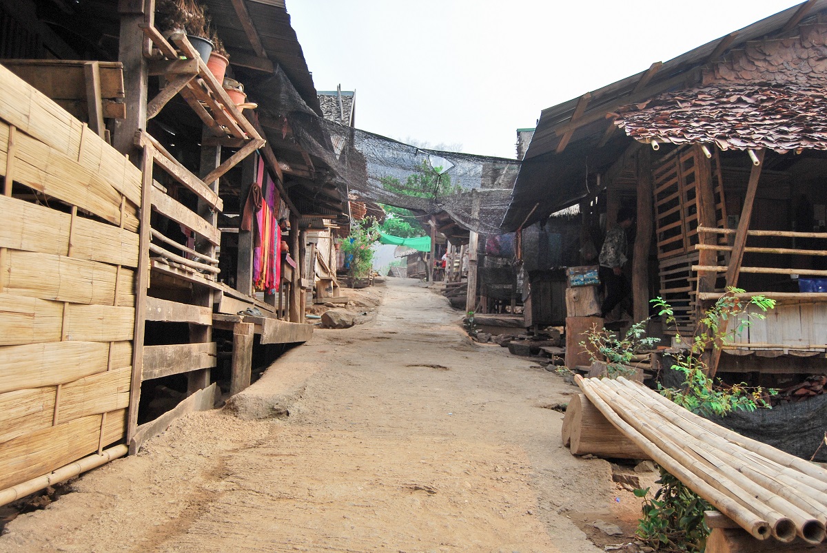 Поглеждаш наляво – още едно спокойно лице и месингова спирала на врата те подканя да седнеш до нея. Обръщаш се в другата посока и там на прага следва същата картина. По-далеч две млади жени в синьо и бяло цепят бамбукови стъбла. По-възрастната няма пръстени на врата, но младата въпреки тежестта върти острия, като бръснач 50 сантиметров нож. Озъртайки се, осъзнаваш уникалността на ситуацията – ти си странния и необичайния. С фотоапарата, с очилата, с късите панталони и може би най-вече с половинката ти, която до скоро си смятал, че има елегантно вратле на сърничка, но в момента, без месинг на врата, тя изглежда съвсем не на място.