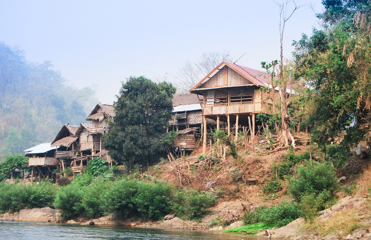 Селцето Бан Нам Пхианг Дин изкочи сякаш от нищото след поредния меандър на пресъхналата река. Няколко лодки унило се кандилкаха на брега и за щастие се оказаха на местните хора, а не на туристи. Дечицата тичаха из прахоляка, бащите им стоях под навеса на тезгяха, който всъщност представляваше магазин, където продаваха ярко зелена лимонада и варени яйца.