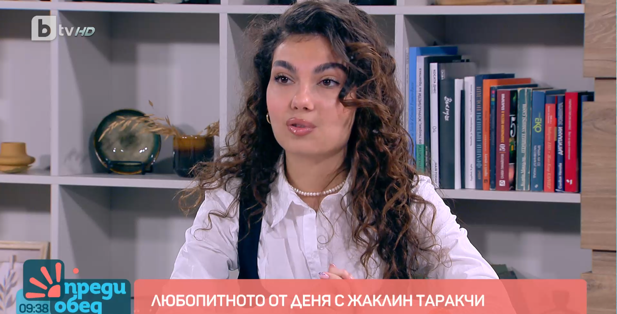 Талантливата певица Жаклин Таракчи гостува в „Преди обед“. Тя говори за предстоящите си професионални ангажименти, как да се грижим и пазим животните, и, разбира се, за психологията. Причината е, че Жаклин учи за психолог, но дали това ще стане нейно професионално призвание, тепърва ще разберем.