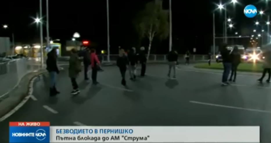 Протестиращите заради безводието в Перник се опитаха да блокират магистрала „Струма”, но бяха спрени от полицията. От там им обясниха, че не трябва да са на пътното платно в тъмната част на денонощието, защото е опасно. След това недоволните се върнаха и блокираха кръговото кръстовище в квартал „Изток”, съобщава Нова тв.