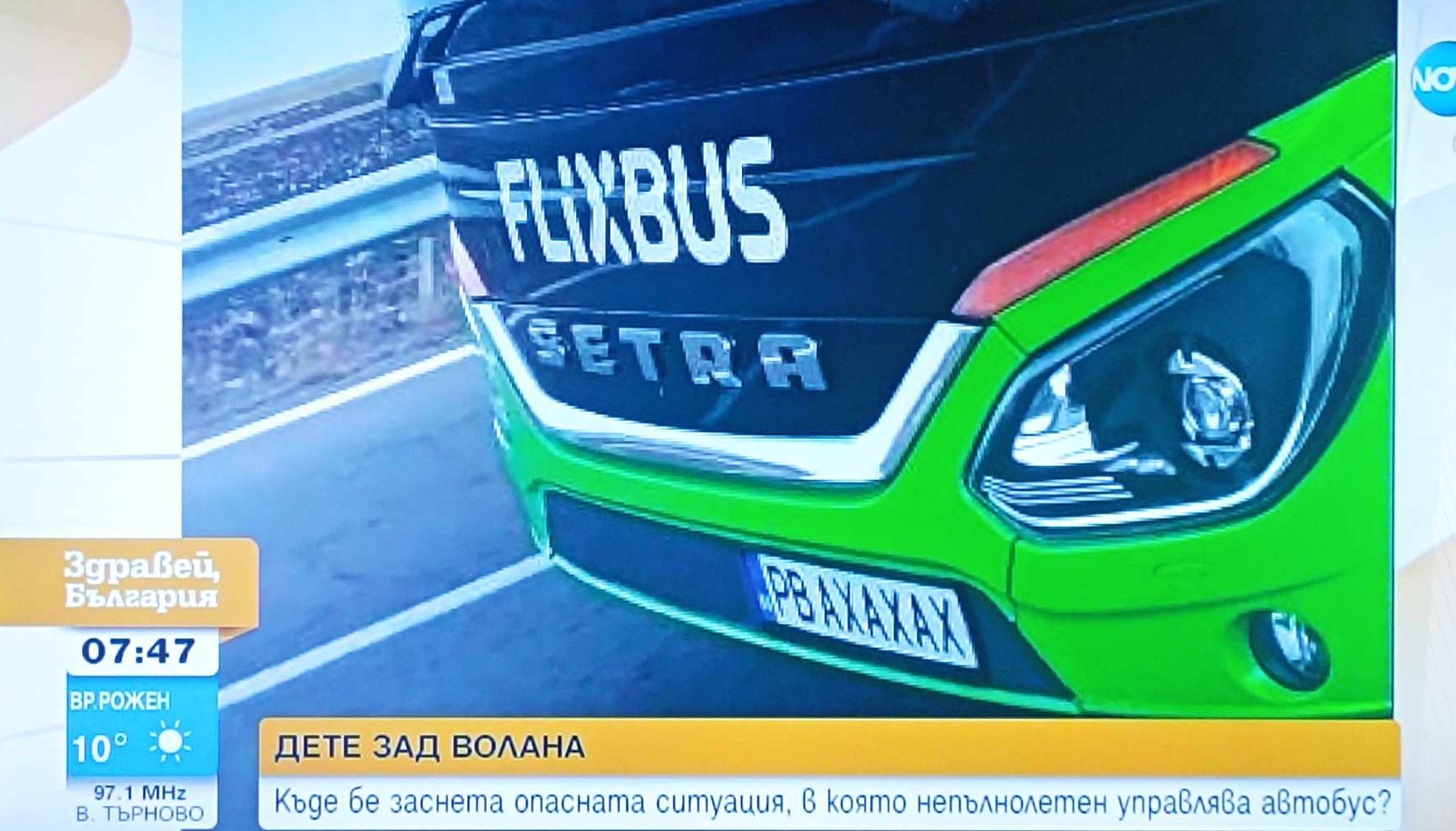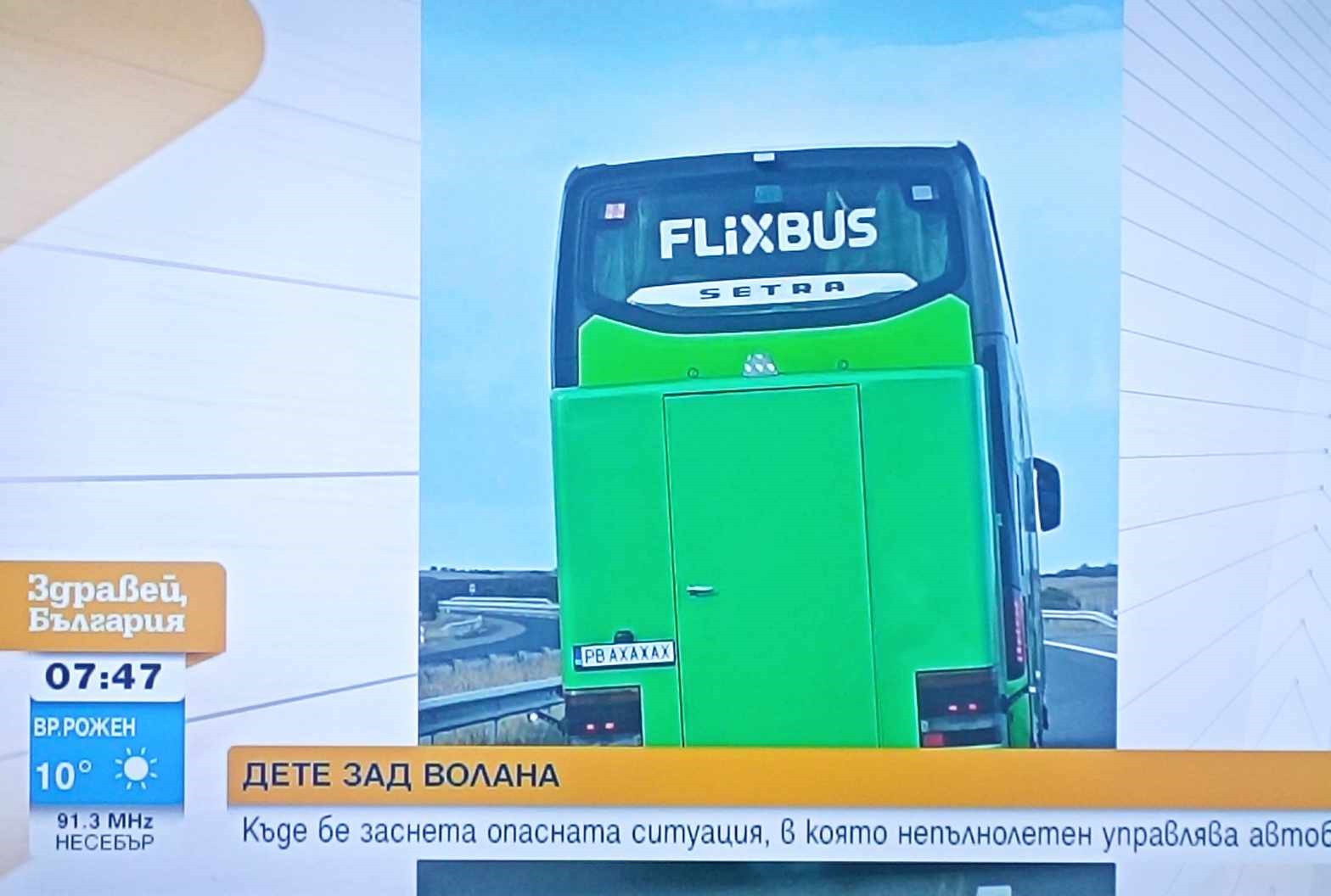 Зрител изпрати клипче до "Нова телевизия", на което се вижда как дете е зад волана на автобус с пътници, седнало в скута на шофьора. Случката е на автомагистрала "Тракия" от вчера в 11 ч.