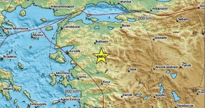 Земетресението е регистрирано на 57 км югоизточно от Балъкесир и на 6 км южно от Синдирги в 12:02 часа местно време (съвпада с българското), предаде "Фокус".